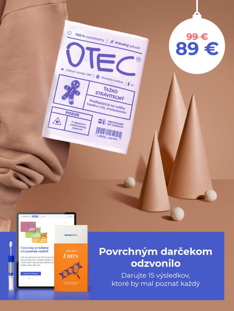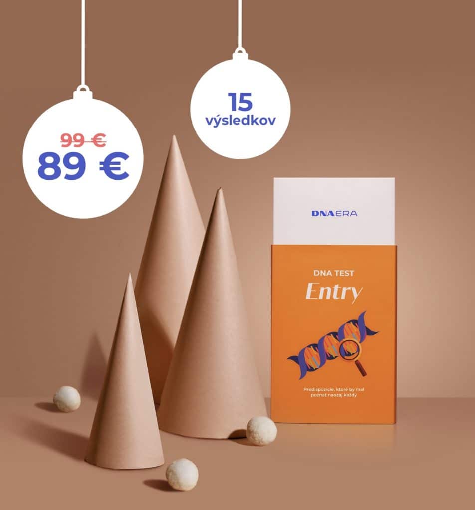 Naším tipom na vianočný darček je najnovší DNA Entry test. Za vianočnú zľavnenú cenu 89 € dostane obdarovaný 15 výsledkov. V tomto teste sú zahrnuté genetické predispozície, ktoré by mal poznať naozaj každý. Napríklad ischemická choroba srdca, riziko vzniku krvných zrazením, predispozícia na hladinu vitamínu D, metabolizmus kofeínu, ale aj športový profil. Výsledky je možné si kedykoľvek jednoducho rozšíriť priamo vo webovej aplikácii, bez potreby opakovaného odberu vzorky.