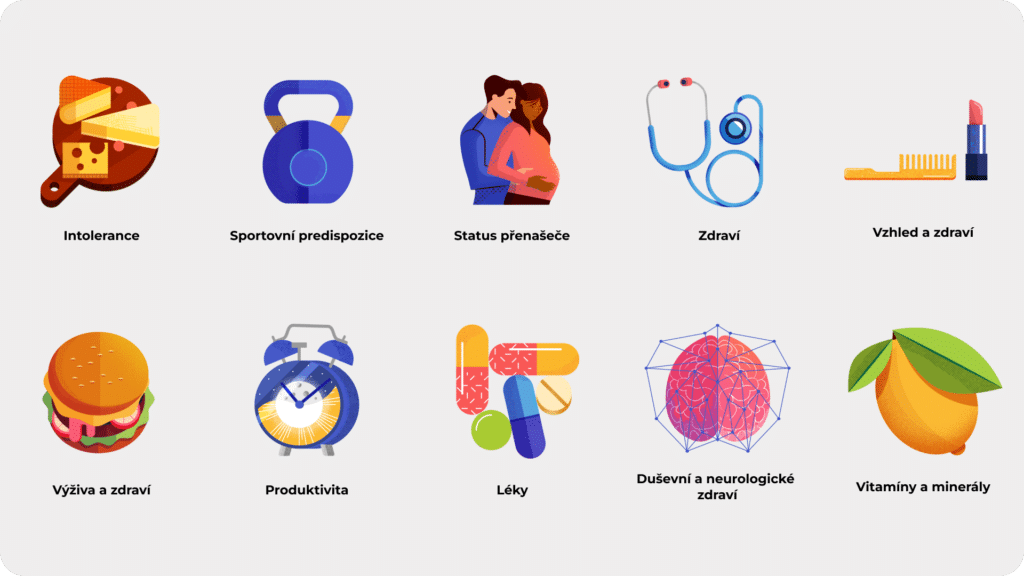• Bez opakovaného vzorku: Vaše primární sekvence DNA se během života v zásadě nemění, a proto všechny analýzy a interpretace umíme provést z jediného vzorku, který jste nám poskytli.