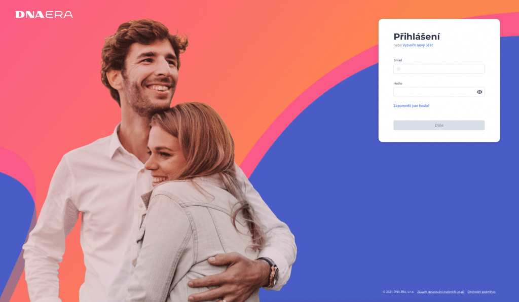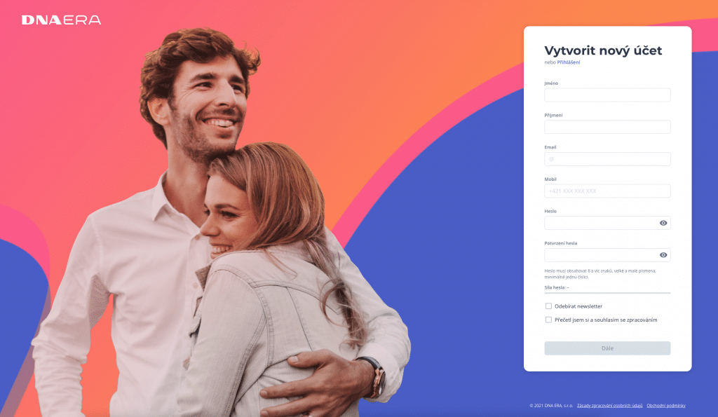 1. Navštivte náš web www.app.dnaera.sk a v okně vyberte možnost Vytvořit nový účet