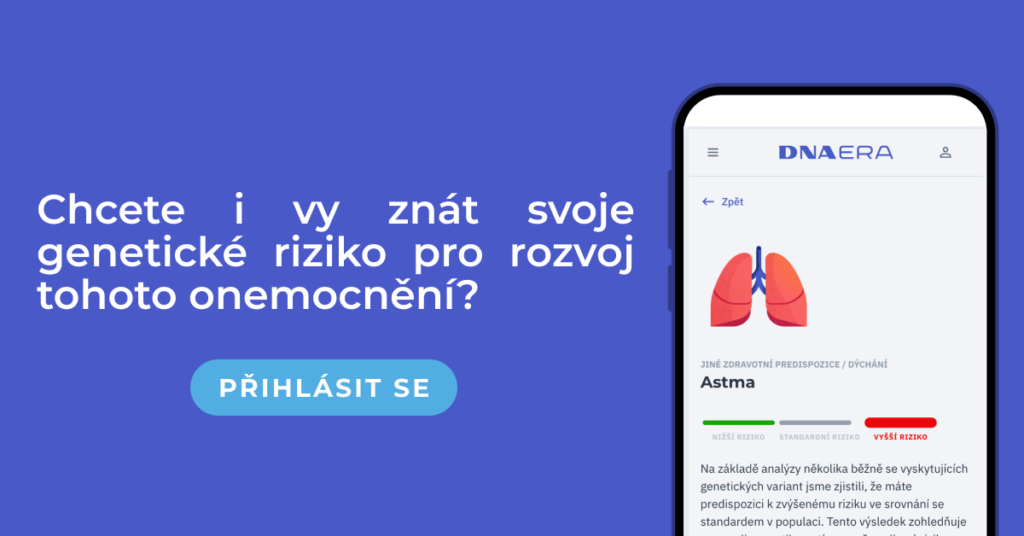Přihlaste se do svých výsledků. Genetická predispozice pro rozvoj astmatu je odteď zdarma dostupná pro všechny naše zákazníky. Zároveň ji bude mít ve své analýze každý budoucí zákazník, který vstoupí do světa DNA s DNA Complex testem nebo DNA Health testem. Poznejte své predispozice i vy.